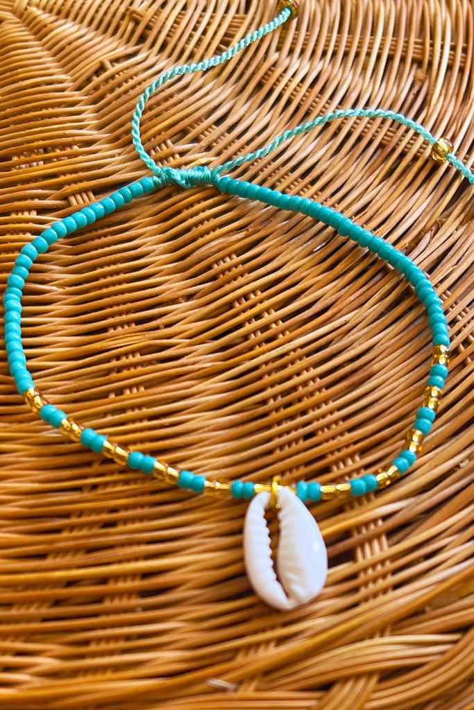 ‘At The Beach’ Seeded Bead And Cowrie Shell Bracelet In Turquoise