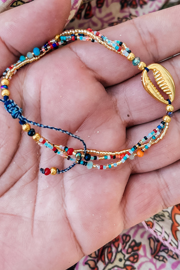 ‘Beach Time’ Cowrie Shell And Seeded Bracelet In Mixed Colours