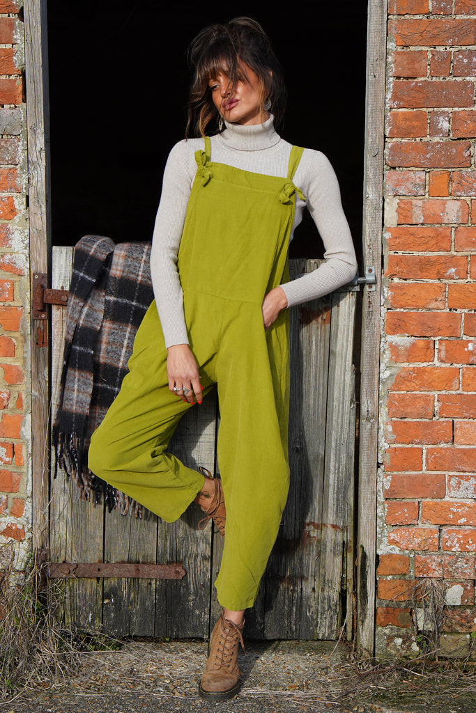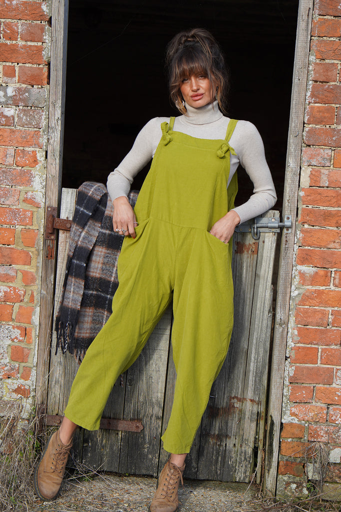 'Leap Of Faith' Soft Corduroy Tie Up Dungarees in Lime