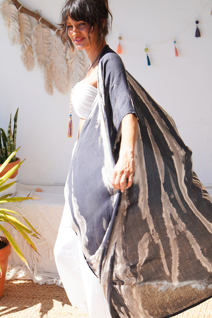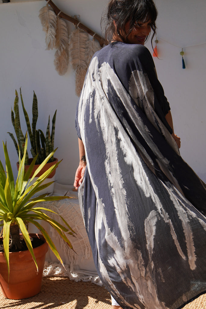 Ultimate boho vibes in this gorgeous dip -dye kimono which has been dyed by hand and is great for layering. Layer over a bikini in the summer, or use as a lightweight jacket in the cooler months or just for at home and being cosy.