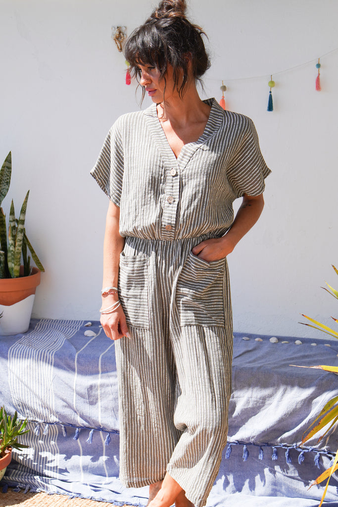 'Brooke' Cropped Candy Stripe Jumpsuit