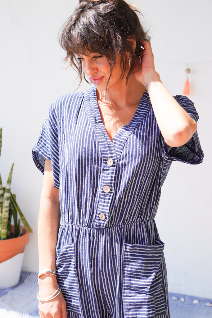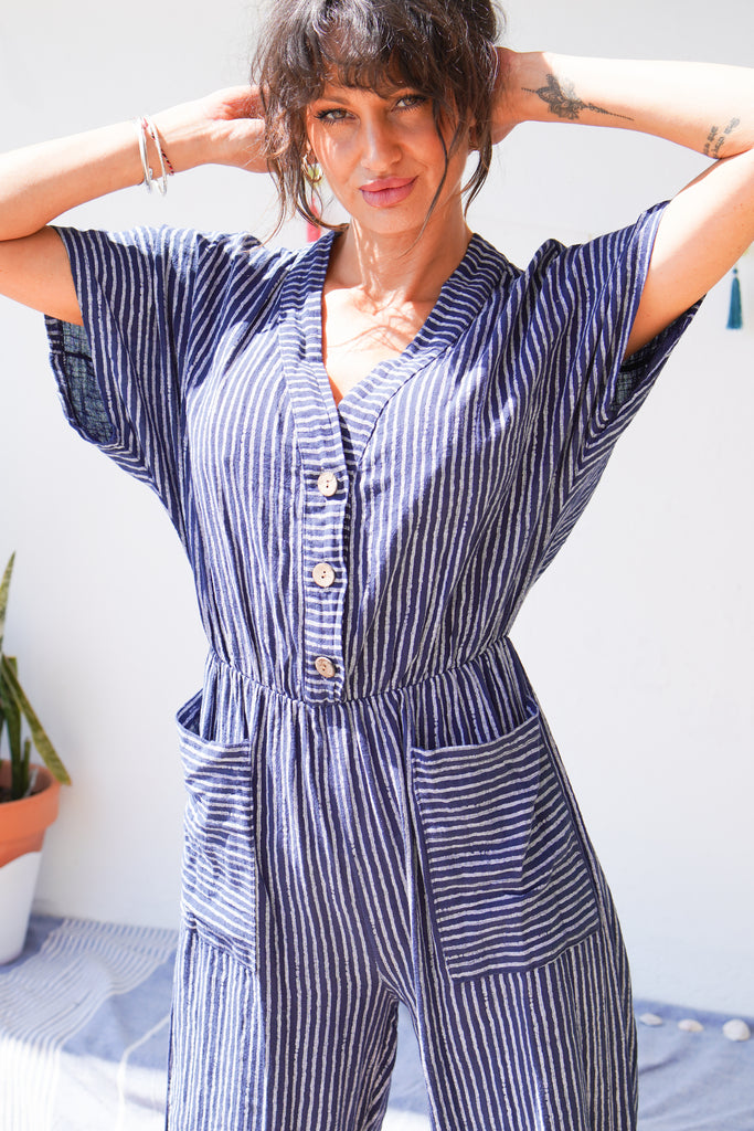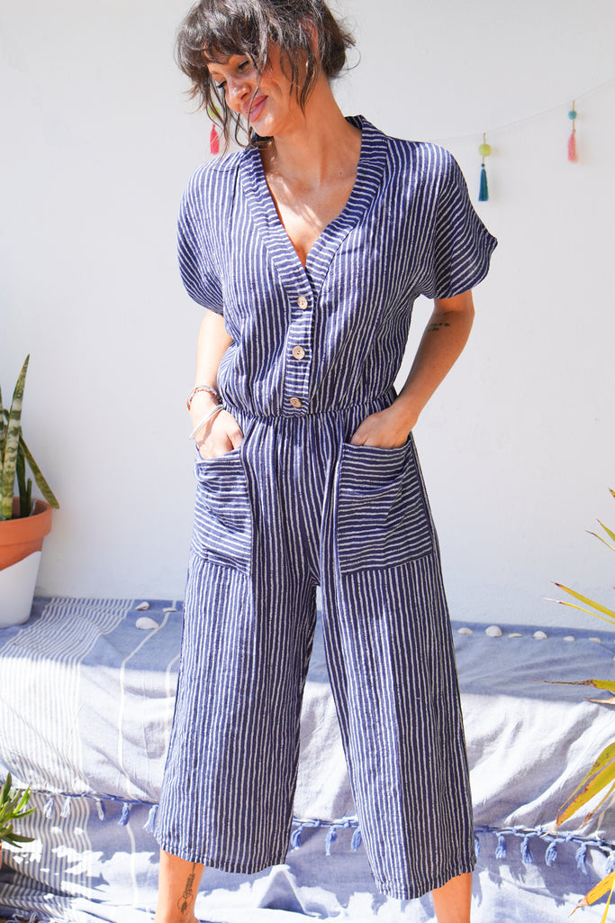 Unleash your playful side with our Candy Stripe Cropped Leg Jumpsuit, available in three colours. Made of breathable cotton, this jumpsuit features a button-down front, deep pockets, and wide legs for ultimate comfort. Perfect for any casual occasion, this jumpsuit is the epitome of style and comfort.