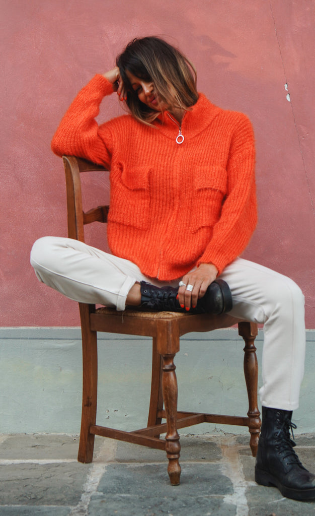 Our luxuriously crafted Italian made, retro-inspired zipper embodies the trendiest of throwbacks, wrapped in a blanket of warmth and protection. Delicately detailed with a full front zip and a voluminous polo-sled neck, as well as exaggerated pockets, this piece of sartorial excellence is the perfect shield against cold winter days. Wear as a jumper or unzip for the laid back coatigan style.