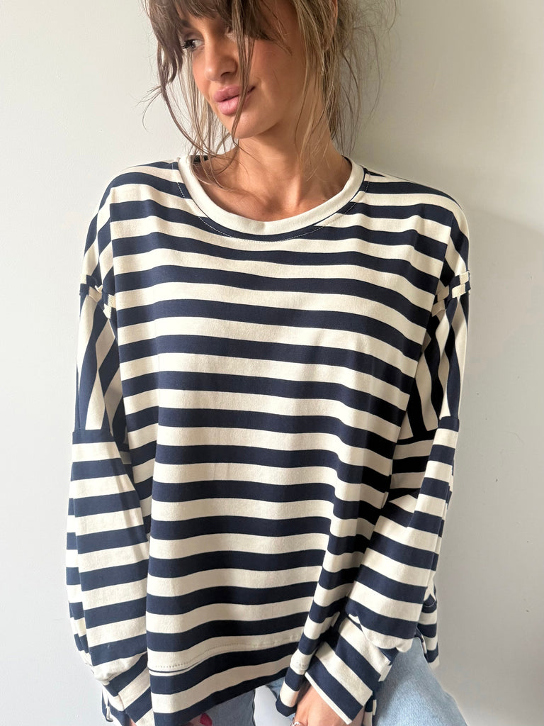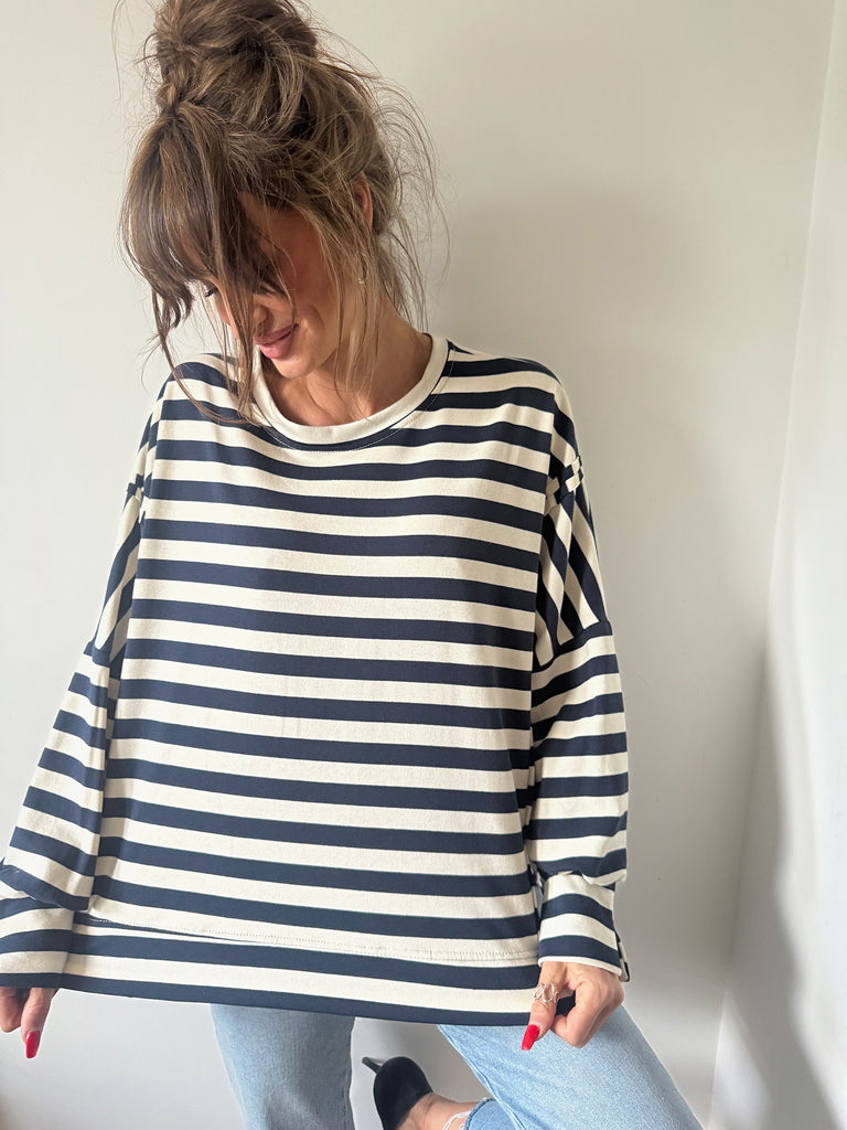 Keep it simple this season in this classic striped top. Long sleeves for extra cosiness. Pair with jeans or classic trousers for a simple and chic look.