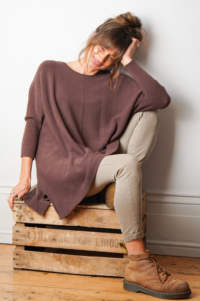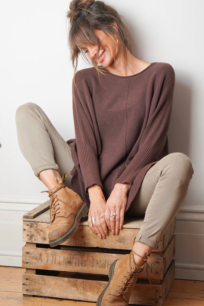 'Slouchy Soft' Brown Thick Everyday Jumper With Ribbed Sleeves