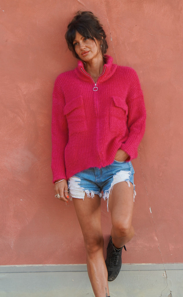 Features: Full front zip, Polo neck, exaggerated pockets, thick and cosy