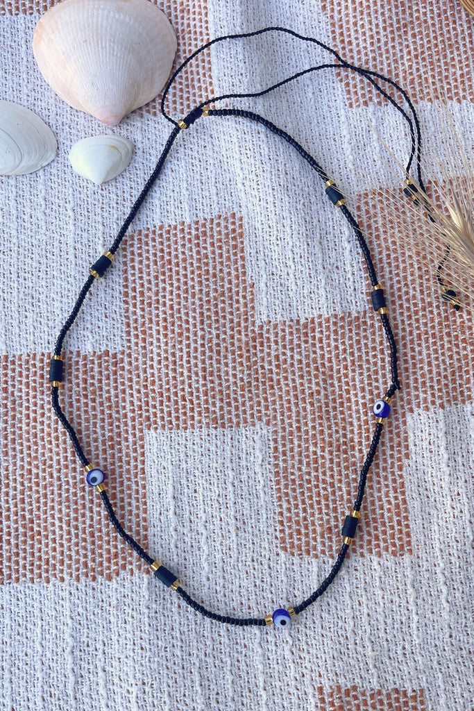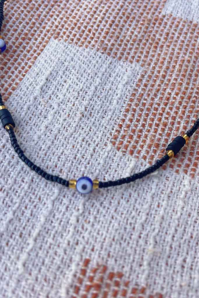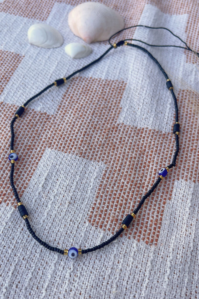 ‘Dreamy Skies’ Nazar Beaded Necklace In Black