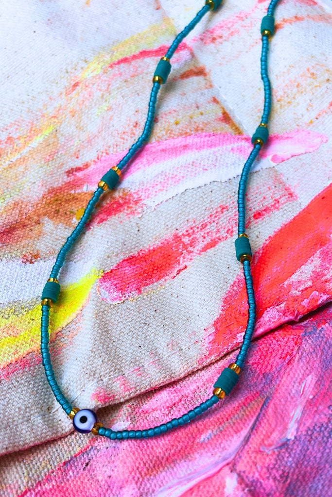 ‘Sunlight’ Beaded Necklace With Nazar Bead In Aqua
