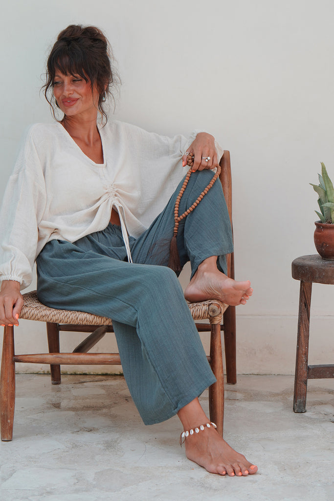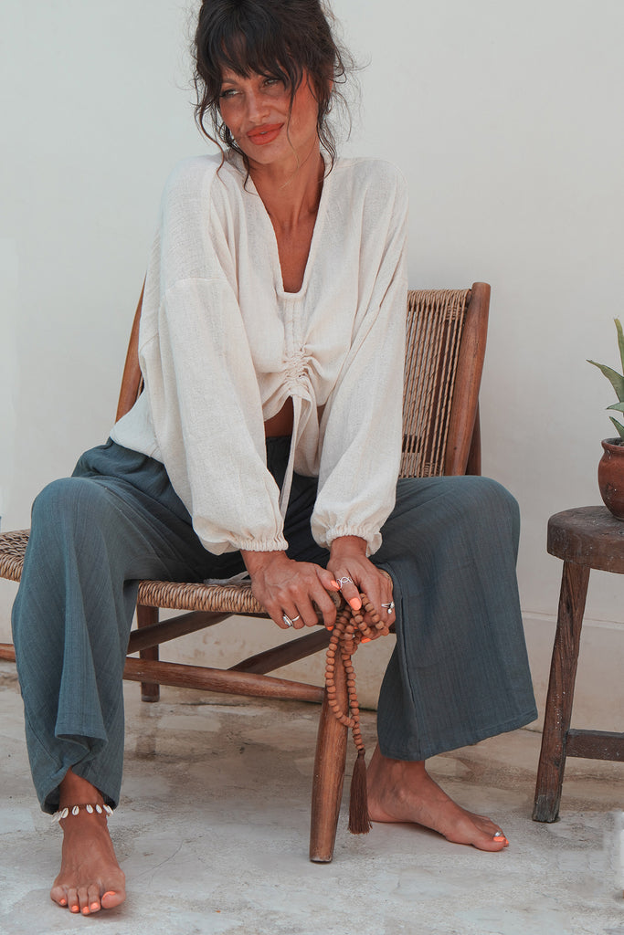 Indulge in deliciousness and sophistication with our Handmade 100% Organic Top. Crafted with organic materials, this top allows you to swan around with an air of elegance. The stunning long sleeves and tie pull ups effortlessly add a touch of style to any outfit.