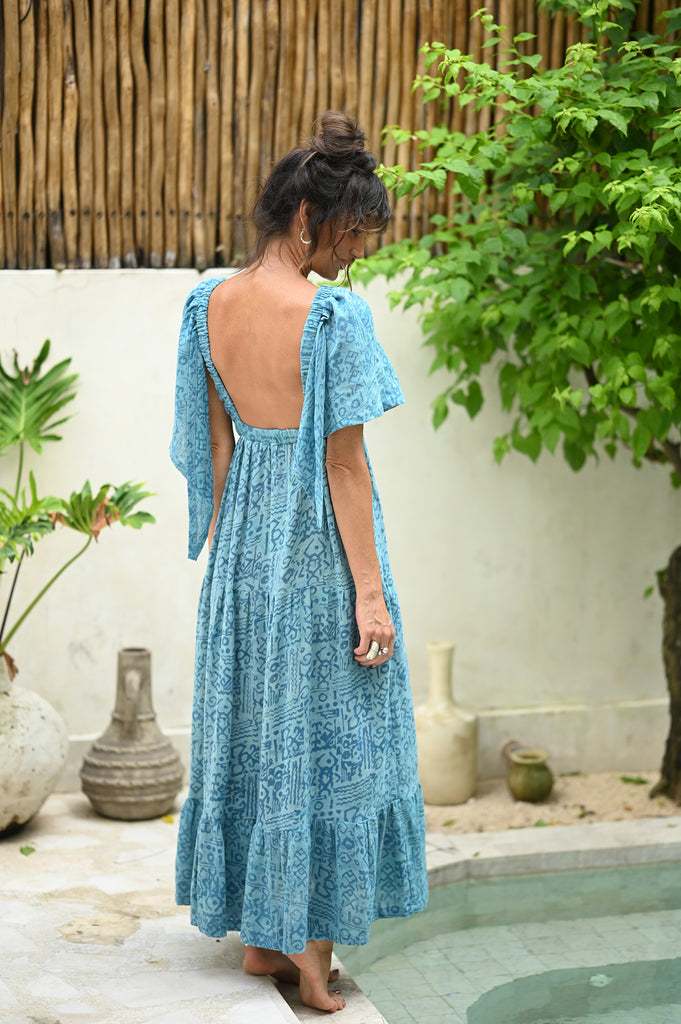 'Roaming' Organic Maxi Dress In Batik Blue