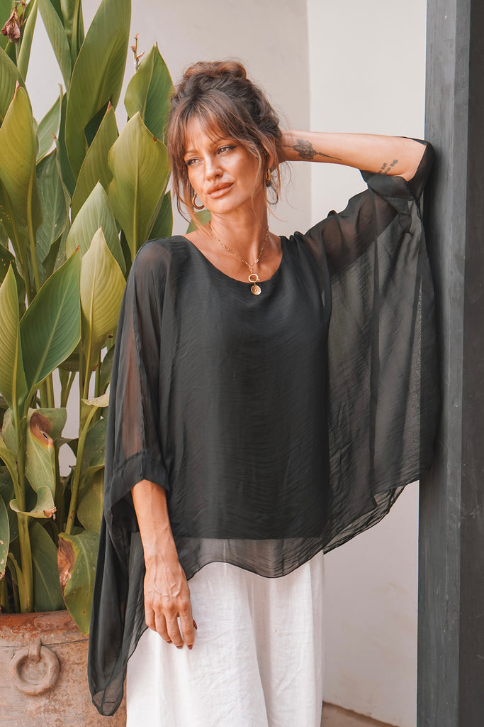 Featuring a longline hem at each side and completely lined. These 100% silk tops are so pretty and have a flowing design. Embrace the softness and quality of silk, perfect for any occasion.
