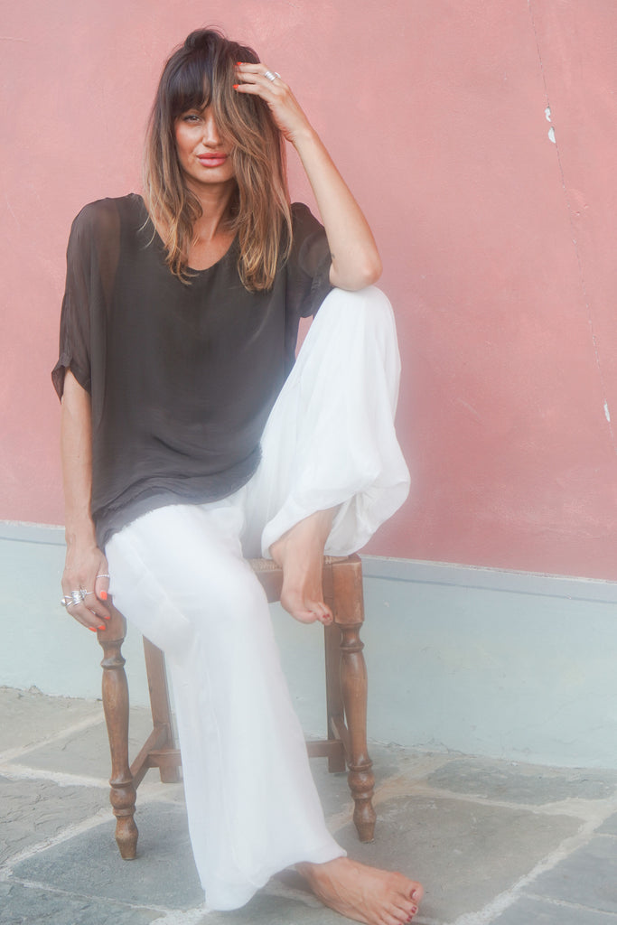 Perfect for this season our 100% silk tops are designed and made in Italy.