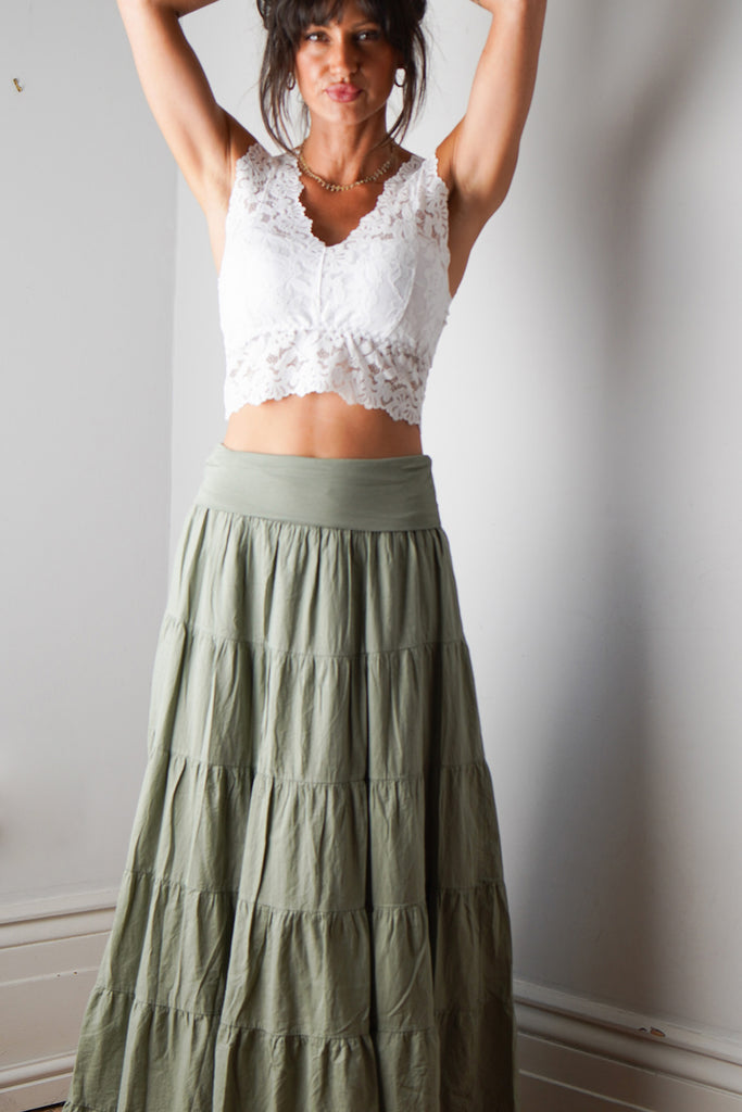 This beautiful tiered maxi skirt is fully lined for a comfortable, flattering fit and perfect for everyday wear. With its flowy silhouette and subtle boho vibes, it adds effortless charm to any outfit. Dress it up or down—it's your go-to for an easy, stylish look.