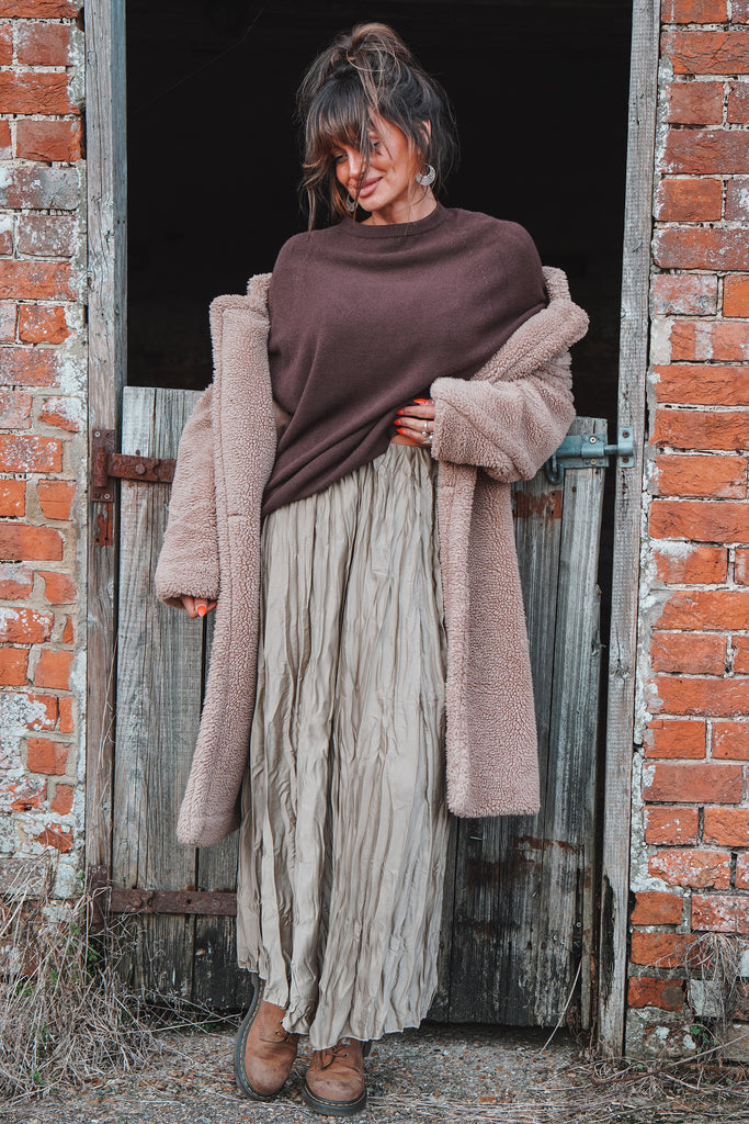 A true party staple, this special scrunch maxi skirt will turn heads with every wear. Featuring an elasticated waistband and special no dramas scrunch wear!