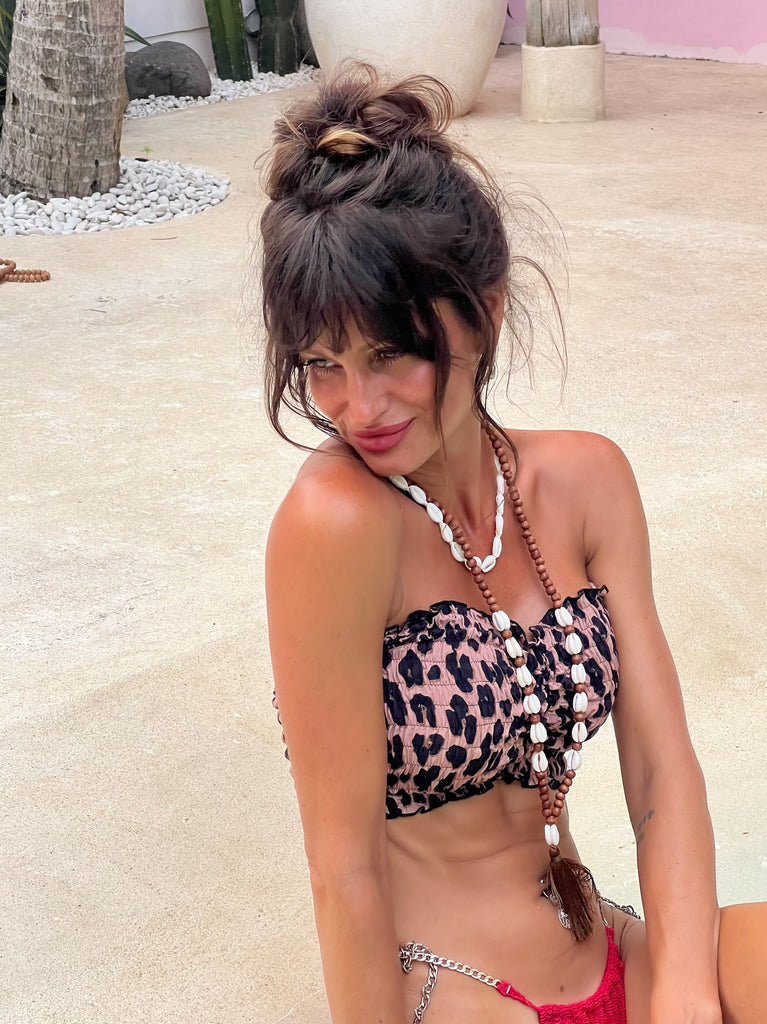 Embrace your free-spirited style with this handmade leopard print stretch top. The bandeau design effortlessly adds a cool touch to any outfit, making it a must-have for any fashion lover
