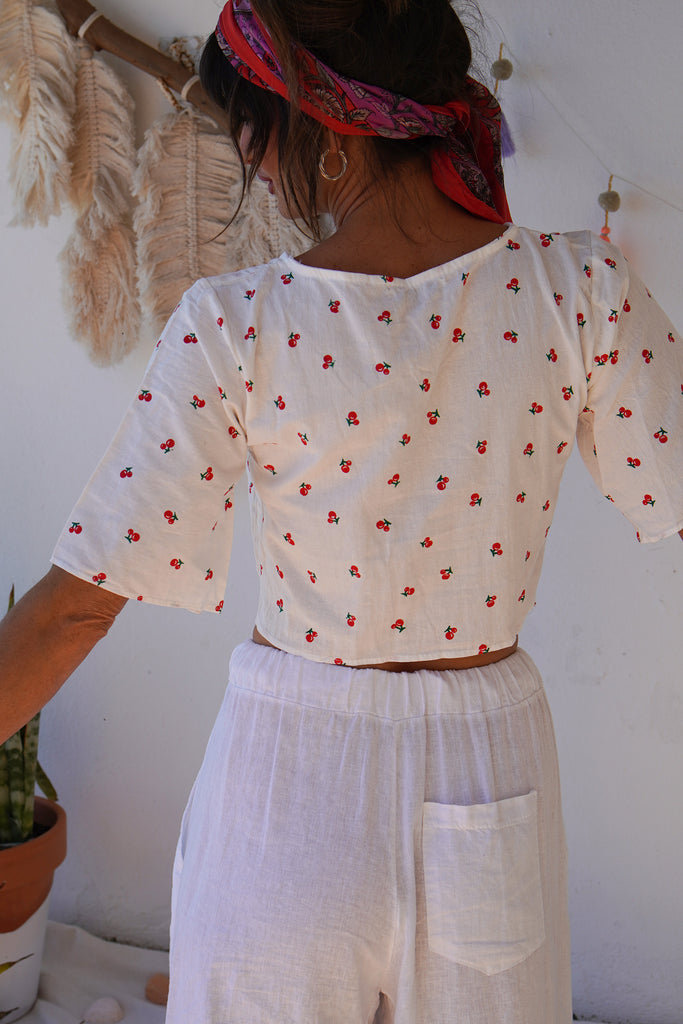 This top is so cute with short sleeves and tie up body. Whether worn alone on warmer days or nights out or layered under your favourite pieces, this top will be your go-to for your boho look.