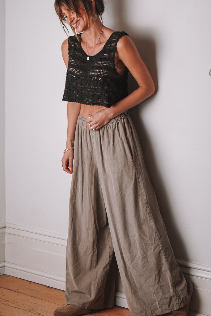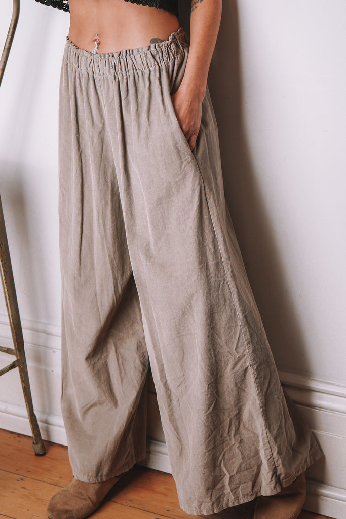 Features: Elasticated waist, wide-leg fit and side-seam pockets