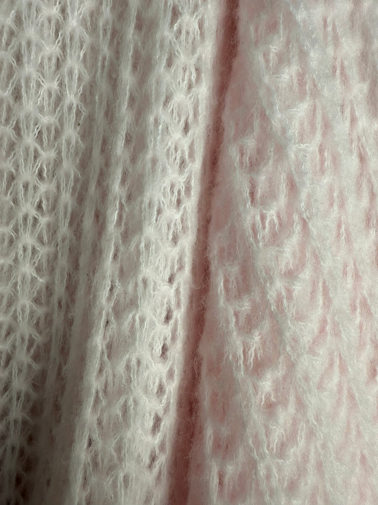 Made in Italy. Your go-to cosy must-have! This cute jumper has a wide v-neck and wide puff sleeves for a laid-back yet chic look. In a classic pastel pink that will go with so many pieces!