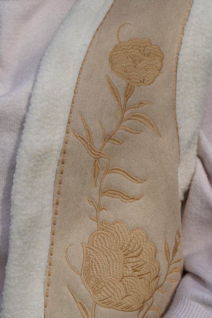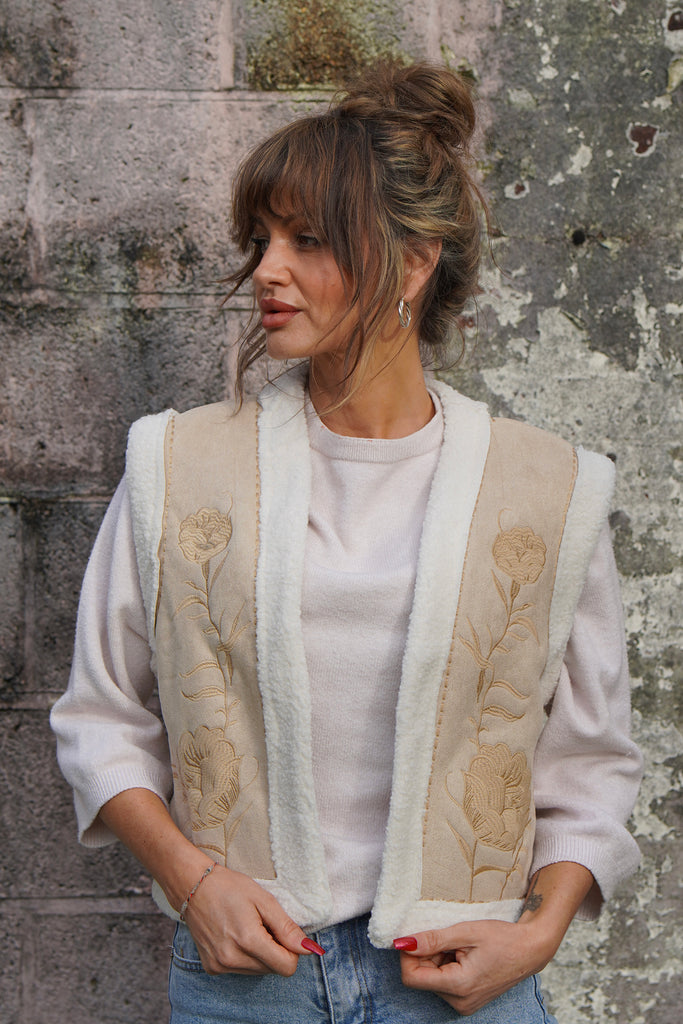 Perfect for this season. A simple but oh so boho gilet. Fleece lined so cosy and warm. Cute embroidery detail. Layer with other items this season for your boho look.