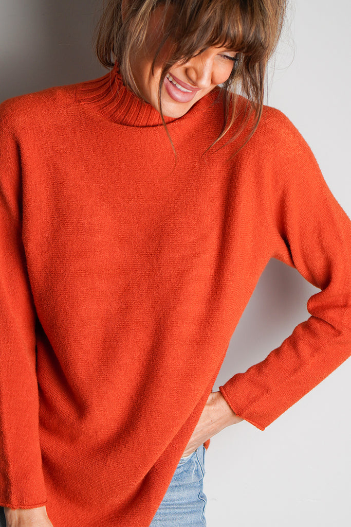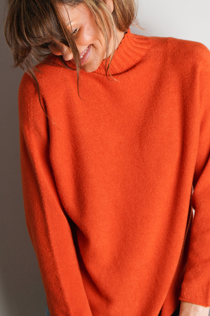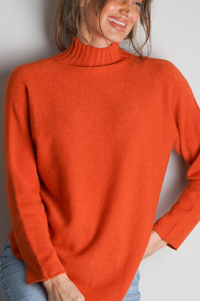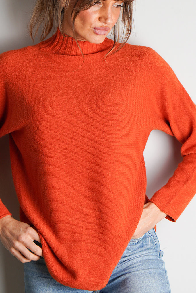 Made in Italy. Combat the chill this season with our soft and snug chunky knits. Designed in a beautiful orange hue and a cosy turtle neck for added comfort and warmth, our chunky knits are perfect for cosy days ahead.
